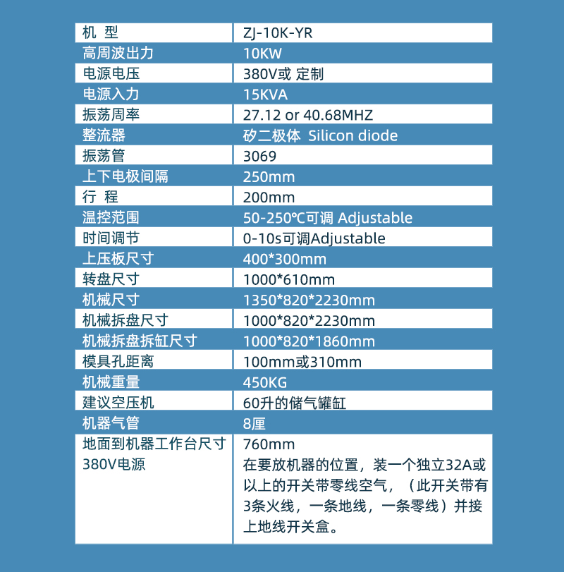 单头转盘同步熔断机型号为ZJ-8K-YR,此机装有进口双管防火花保护装置,对高周波模具及生产产品起到很大的保护作用,可以把模具打火机率降低95%,是一款转盘式高周波机,可以单人操作,节约人工。如果您对我们公司还想了解更多,那就马上与我们联系吧,无论您什么时候来电,我们都会为您解答各类有关高周波机的问题。联系电话/微信 13927715208 李先生。